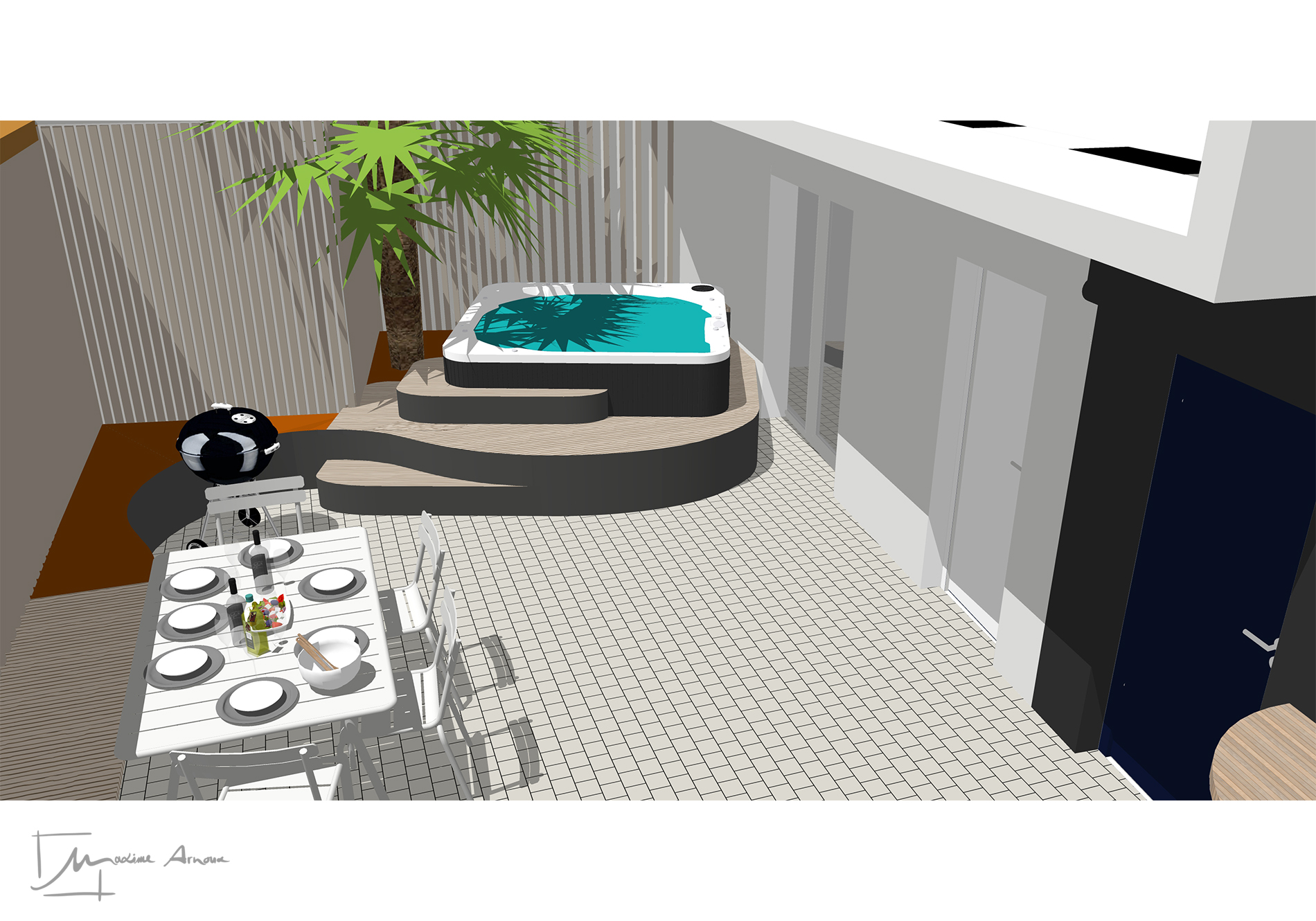 L'idée proposée : DYNAMISER L'ESPACE et le rendre plus accueillant pour toute la famille. L'envie des clients d'installer un jacuzzi a été le point de départ du concept architectural.